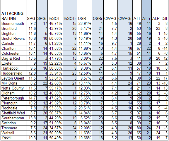 The table throws up some surprises and shows there is a wide gap between some of the attacking ranks (ATTr) and actual league position (ALP).