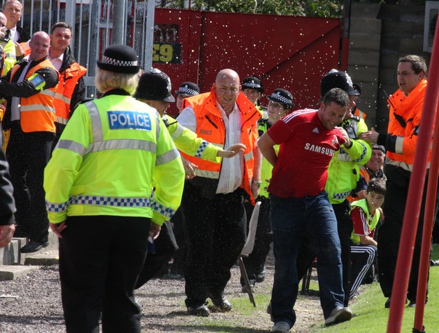 Di Canio said too much to the referee and got his marching orders as did one town fan, who got ejected from the home end, although the Police did change their mind over the route out of the ground passing the front of the Stratton Bank after a shower of bottles and liquids were thrown at the fan!