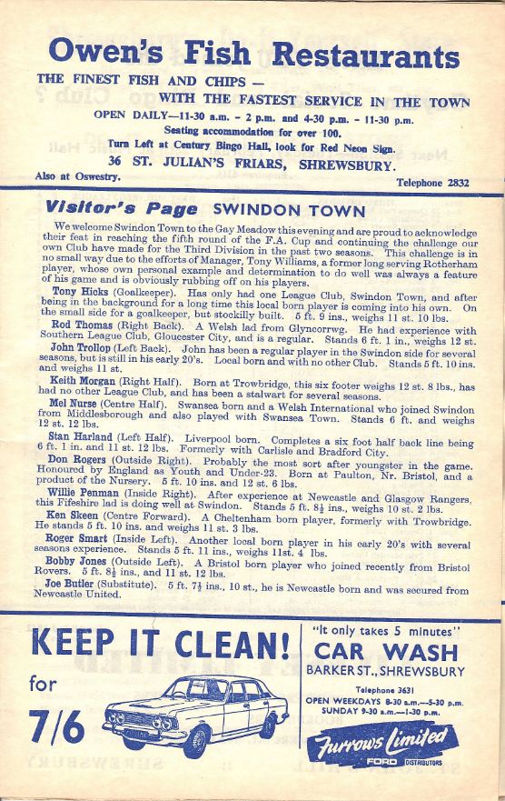 1967 Shrews 3 Posted on August 25, 2011 by TheWashbag Leave a comment Previous Next Return to Match Preview: Swindon v Shrewsbury Town