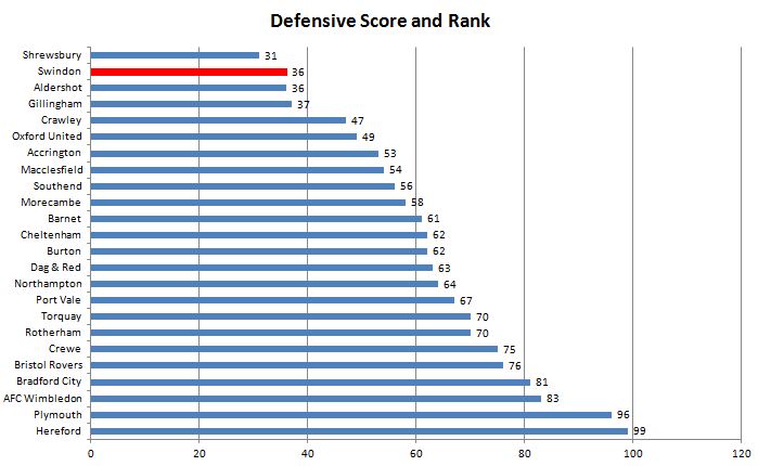 Adding together all of the ranks from the five statistics, Shrewsbury Town are by far the best defensive unit in League Two. This is despite the Shropshire side sharing the third lowest total goals conceded, behind Morecambe and Aldershot.