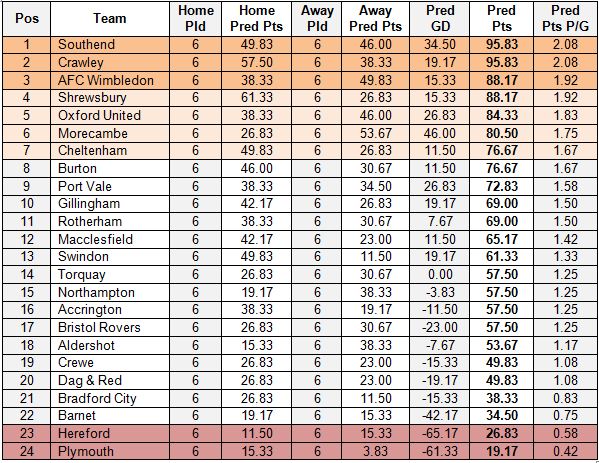 Seeing that we’ve passed a quarter of the games in League Two this campaign it’s time to get out my predicted points finishes table for the first time.