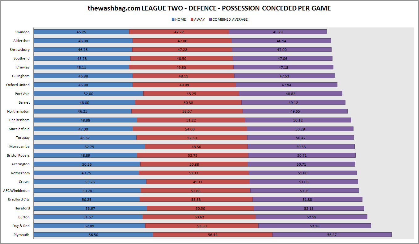 Swindon have controlled games to restrict their opponents to the lowest amount of possession in their combined home and away performances with an average of 53.7% in our favour.
