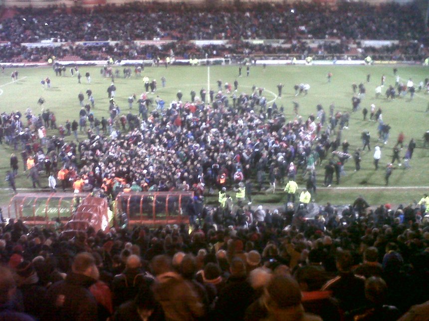 The final whistle saw jubilant scenes as hundreds of Robins poured onto the pitch to celebrate with their new found heroes. My arrival onto the pitch was late but I still managed to give Paul Benson a pat on the head to say well done! I think the club missed a trick by not sending the players back out for a lap of honour because well over half the crowd had waited behind for the opportunity to show their appreciation. Still, every Town supporter could go home to defrost, happy in the knowledge that they have a trip to Wembley to plan.