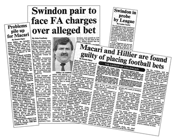 Again though, Swindon ended up in the spotlight for the wrong reasons and eventually, against the constant backdrop of scandal and allegation, Hillier is found guilty in court and banned for six months for breaking FA Rules on gambling – lengthened to 3 years on appeal. Former boss Macari is fined £1,000 for his part in the scandal, he too decides to appeal, which is one step too far for his current employers West Ham who force him to resign.