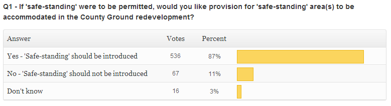 The onus is now upon Swindon Town Football Club to take into account this clear support for standing in their discussions with the Football League, relevant authorities and, of course, in developing the design for the County Ground redevelopment. The option is available to the club to further explore the demand for standing with supporters – through conducting their own survey – which I hope would reflect the results that we see here.