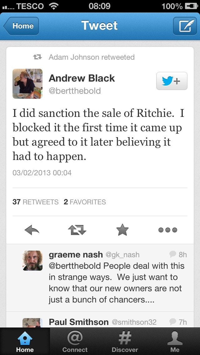 Andrew Black answered one question last night, via Twitter. Then deleted it.