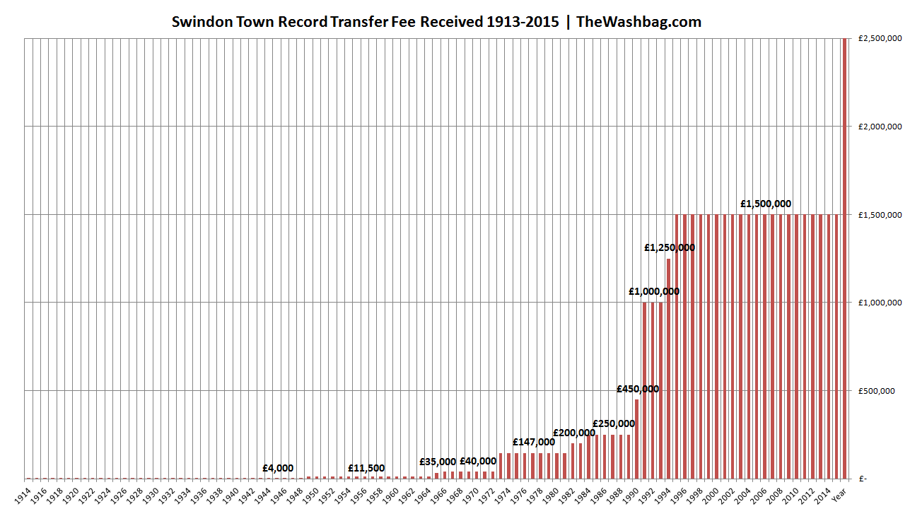 Looking back, the record transfer fee received for a Swindon player has been set on 12 previous occasions…